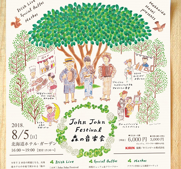 3年目となる今年は8/5(日)に開催。アイルランド音楽を演奏する John John Festivalをゲストに迎え、ホテル特製ビュッフェ&クラフトマーケットを楽しめるガーデンイベントです。マーケットにはチームヤムヤムも出店予定です。ぜひ浴衣を着て、夕涼みの心地よいひとときにおでかけください。