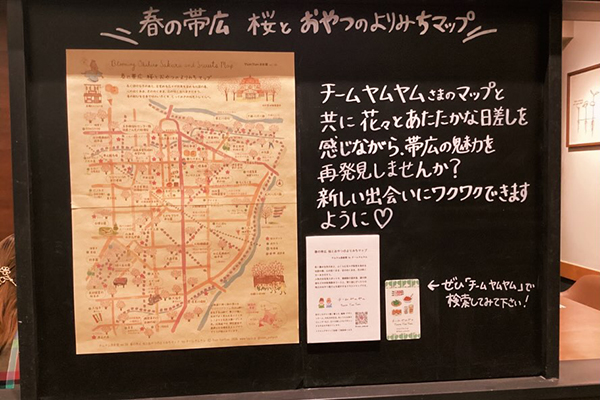 帯広市内にあるスターバックスコーヒー帯広白樺通り店にて、「桜とおやつのよりみちマップ」を掲示していただいています。 マップを目に留めていただいたお店の方より、店内にて紹介したいとのお声がけをいただき、店内のコミュニティボードにて掲示いただいています。